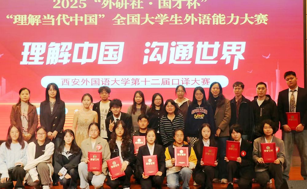 2025年10月11日,由教务处主办、高级翻译学院承办的西安外国语大学第十二届英语口译大赛决赛暨2025“外研社·国才杯”“理解当代中国”全国大学生外语能力大赛英语口译校级决赛顺利举办。来自各学院的9名选手参赛,英文学院王静、王娜,教育学院王红香,我院韩林烨、李睿天等教师担任评委。