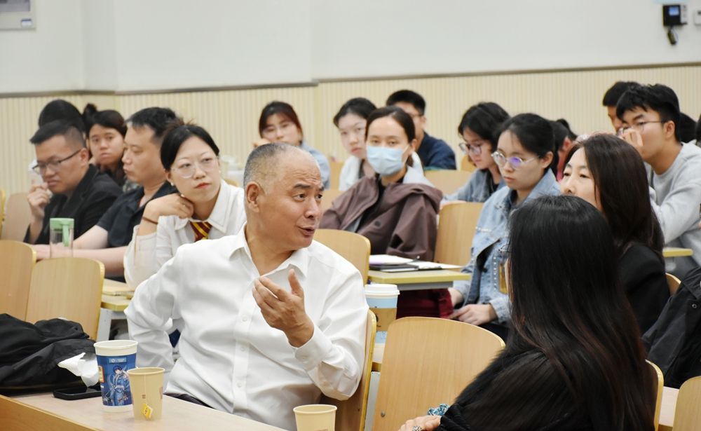 互动交流环节学术氛围浓厚,杨枫教授与师生们围绕知识翻译学的跨学科融合应用、“五梁十二柱”框架在翻译实践中的落地路径、知识翻译赋能中华优秀传统文化对外传播、中国国际话语体系建构等问题展开深入研讨。