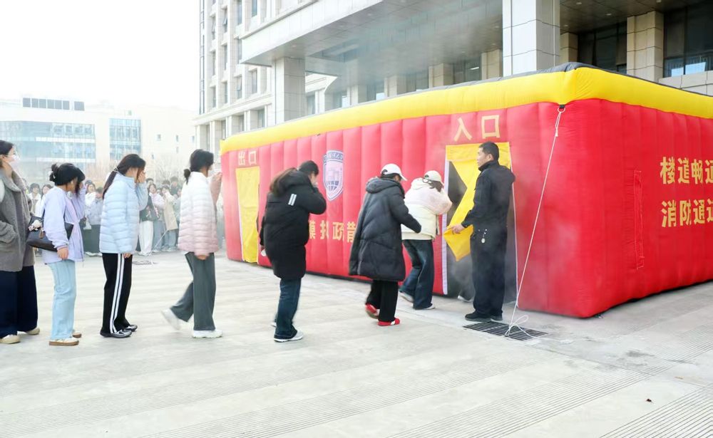 实操培训在启智楼东侧进行,聚焦消防器材规范使用与火灾逃生帐篷演练,校保卫处工作人员演示了灭火器、消防栓的操作流程与动作要领,指导学生分组开展火灾逃生演练,确保大家熟练掌握灭火器材的正确使用方法,切实提升初期火灾处置能力。
