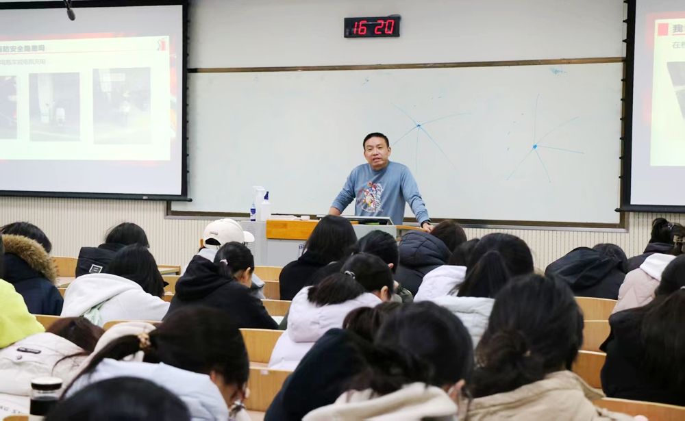 在讲座中,校保卫处赵鹏辉围绕火灾风险认知、身边隐患排查、应急逃生处置等内容,结合高校消防安全典型案例,系统解读了校园火灾的诱因与危害,剖析了宿舍、教室等重点区域的消防隐患风险点,详细讲解了火场逃生的原则、路线选择、自救互救技巧。