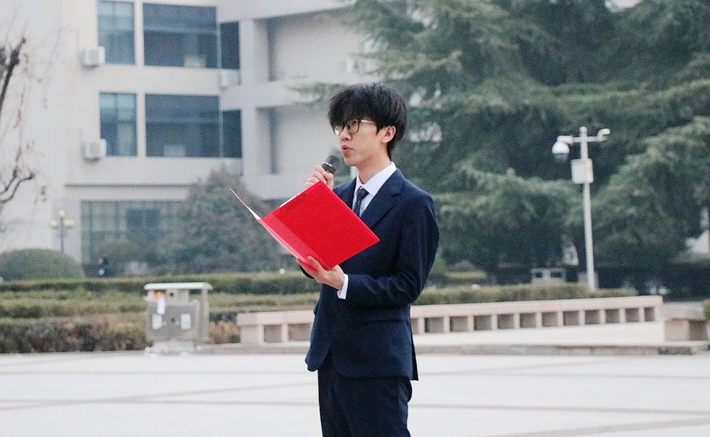 2022级本科生邹文轩以“扎根语言沃土,传递家国温度”为主题发言。他表示,语言是融通中外的桥梁,翻译专业学生在实践中锤炼专业能力,传递中国声音;无论是投身“一带一路”建设与外交一线,还是深耕学术研究、探索红色文化国际传播,高翻人始终以专业立足、以家国为怀,将个人成长融入民族复兴的伟大征程。他呼吁同学们夯实双语功底、厚植文化底蕴,在国际交流舞台上展现中国青年的风貌,让青春在党和人民需要的地方绽放光芒。
