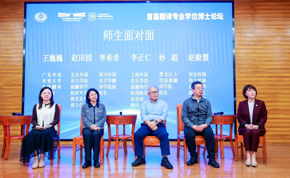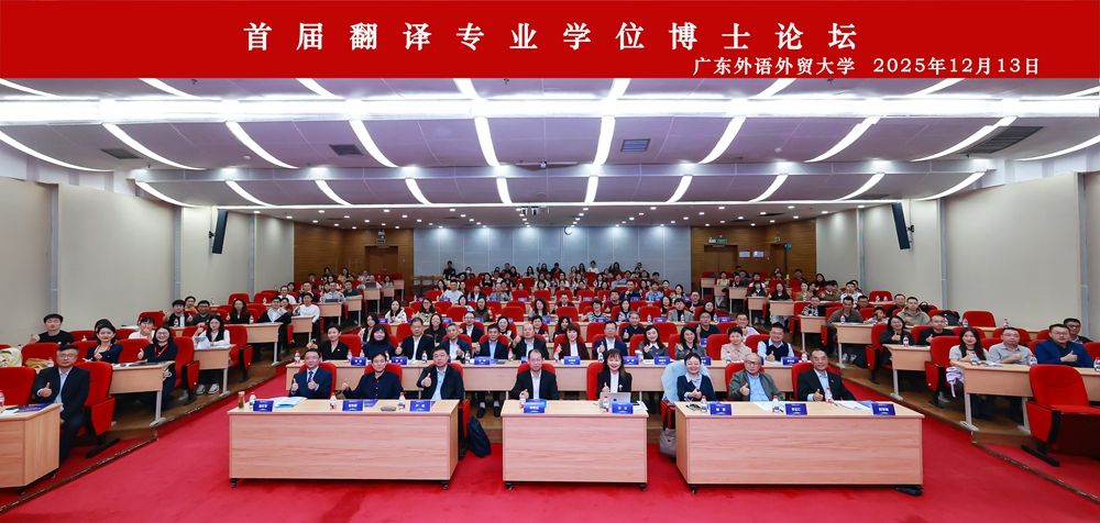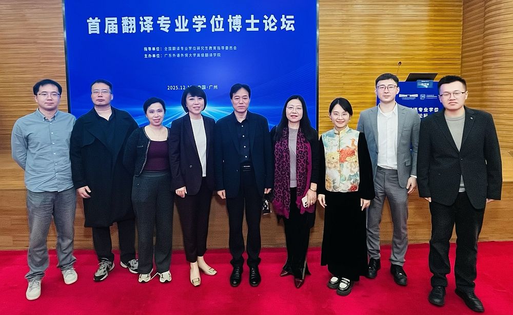 20251213日,首届翻译专业学位博士论坛在广东外语外贸大学召开。全国翻译专业学位研究生教育指导委员会委员、我校DTI导师党争胜教授,高级翻译学院副院长(主持行政工作)赵毅慧,教师代表杨晓华教授及六名DTI博士生参会,共襄翻译学术盛宴。