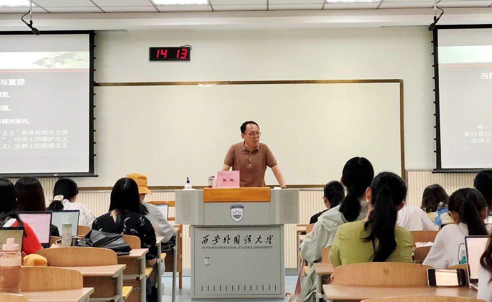 2021年6月4日,马克思主义学院、欧洲学院、高级翻译学院联合举办的2020-2021春季学期“形势与政策”课之大国外交专题顺利开讲。本期邀请到文化部原参赞贾建新、西安市委外办主任强盛、副校长赵国华、副校长吴耀武、国际关系学院院长张杰五位嘉宾为学生授课。