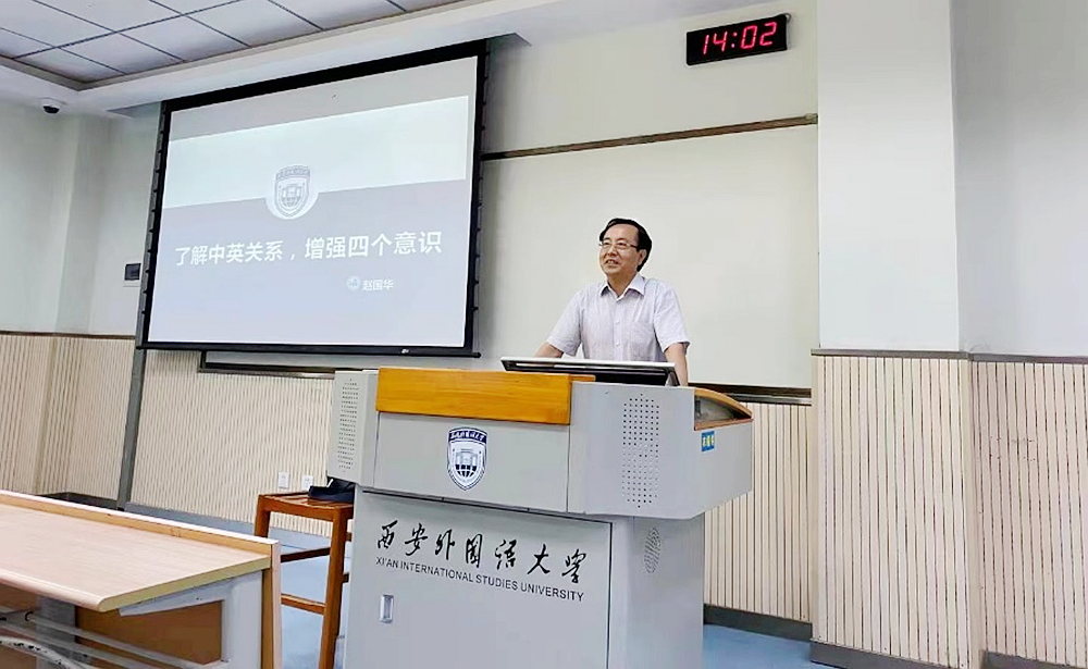 通过讲述本世纪之初和十九大之后两个不同任期的外交战线历史,赵国华指出,随着中国综合国力、国际影响力不断增强,中英关系掀开历史新篇章。随后,他对中英关系“前世今生”、中国外交官职责使命、人类命运共同体的大势所趋等方面进行具体讲授,并结合高校立德树人根本任务,教育引导同学们正确了解综合国力此消彼长东升西降的“时”,深刻认识中华民族伟大复兴是任何势力也无法阻挡的“势”,增强“四个意识”、坚定“四个自信”、做到“两个维护”,把爱国之情、强国之志、报国之行融入到国家富强、民族复兴、人民幸福的“十四五”新征程,在中华民族伟大复兴战略全局和世界百年未有之大变局中不懈砥砺奋斗、贡献青春力量。