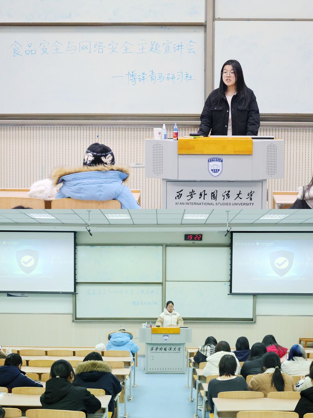 为增强新生安全意识,筑牢校园安全防线,高级翻译学院博译青马研习社近日举办两场讲座,围绕食品安全、网络安全、生命安全、舆论安全系统普及安全知识,助力新生提升自我保护能力。