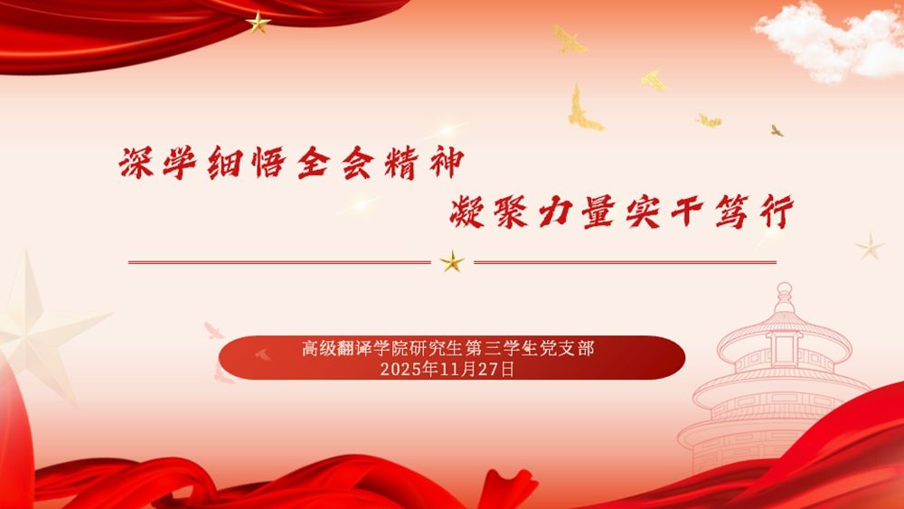 为持续巩固拓展前期学习教育成果,引导学生党员将学习成果转化为实际行动,高级翻译学院党委研究生第三学生党支部于2025年11月27日开展“深学细悟全会精神,凝聚力量实干笃行”主题党日活动。支部全体党员参加。