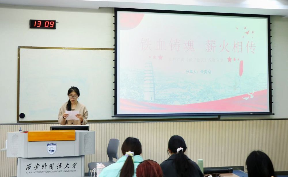 2025年12月10日,高级翻译学院博译青马研习社举办《保卫延安》读书分享会,全体社员参加。贾熙涵主持活动,王璐、朱奕纳作分享交流。